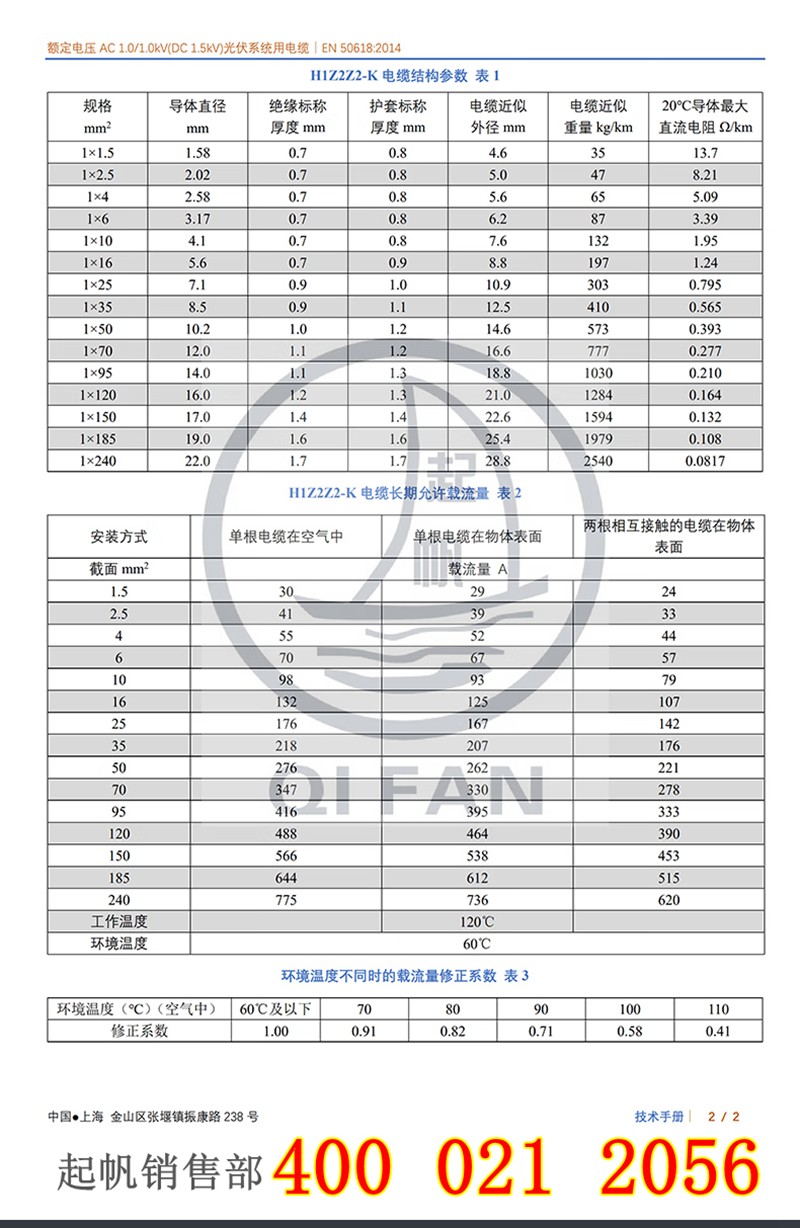 H1Z2Z2-K光伏電纜·電壓參數(shù):